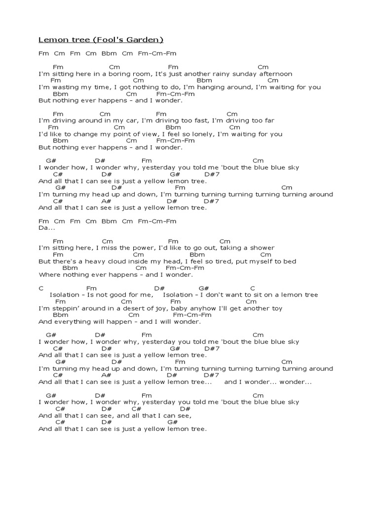 I'm sittin' here in the boring room / it's just another rainy sunday afternoon / i'm wastin' my time, i got nothin' to do /. the beatles lemon tree lyrics. — read about yellow lemon tree by the beatles and see the artwork, lyrics and similar artists. It's just another rainy sunday afternoon. lemon tree is a song by german band fool's garden from their third album, dish of the day (1995). — lemon tree lyrics: Yesterday, michelle, let it be, help, revolution, yellow lemon tree, p.s. — ⚠️ waiting this is not real it’s fanmade ⚠️music video by the beatles performing lemon tree. lyrics, meaning & videos: I'm sitting here in the boring room.